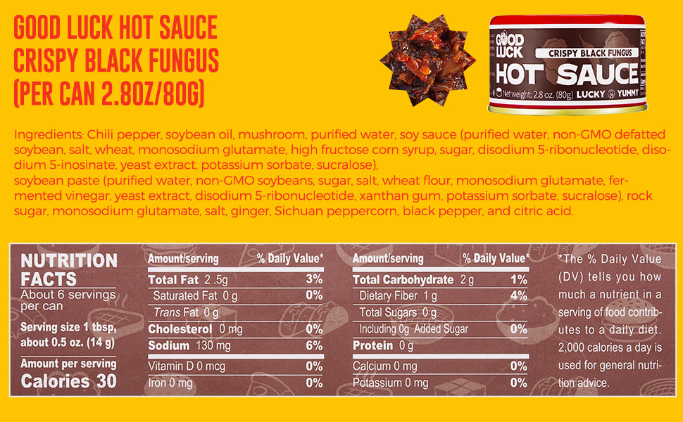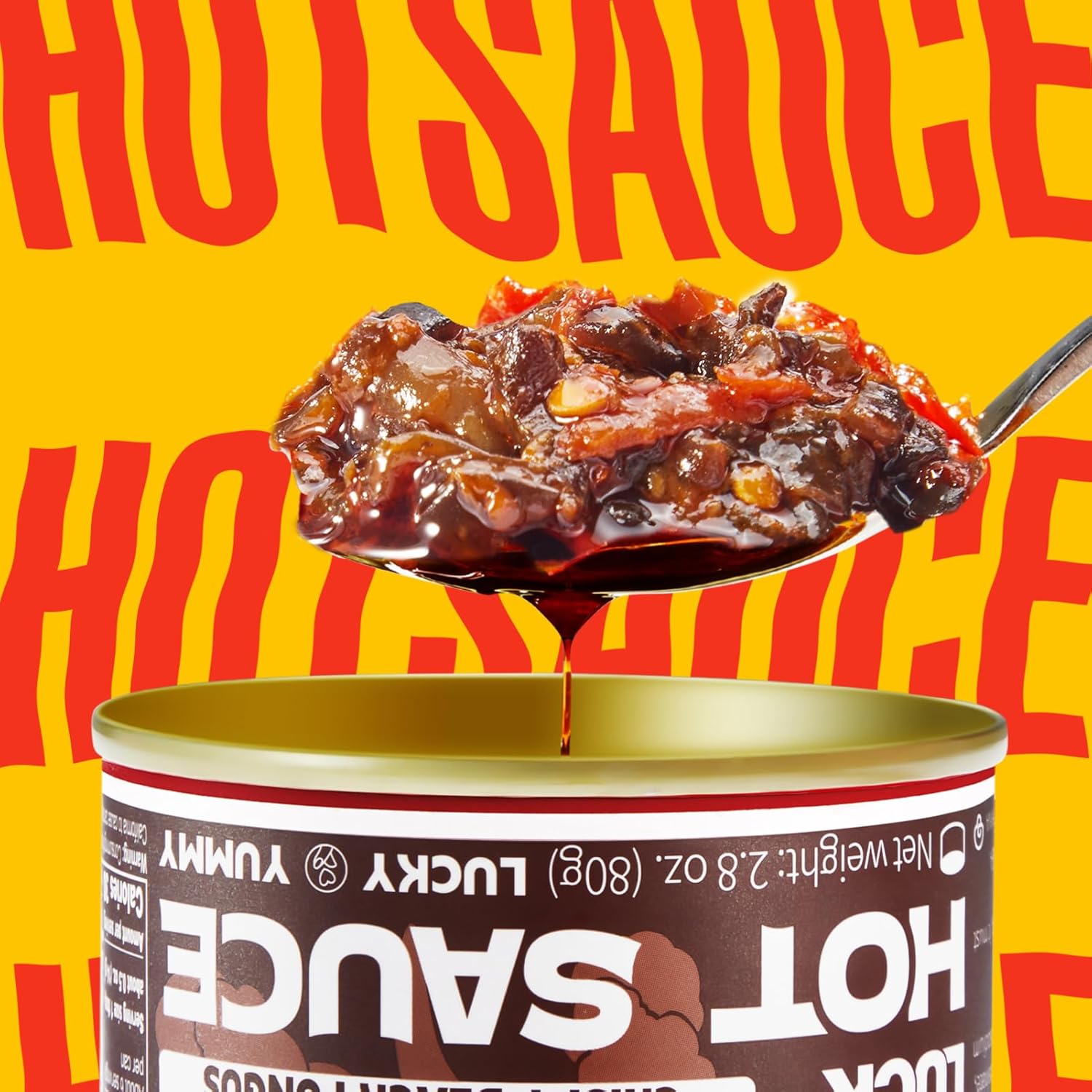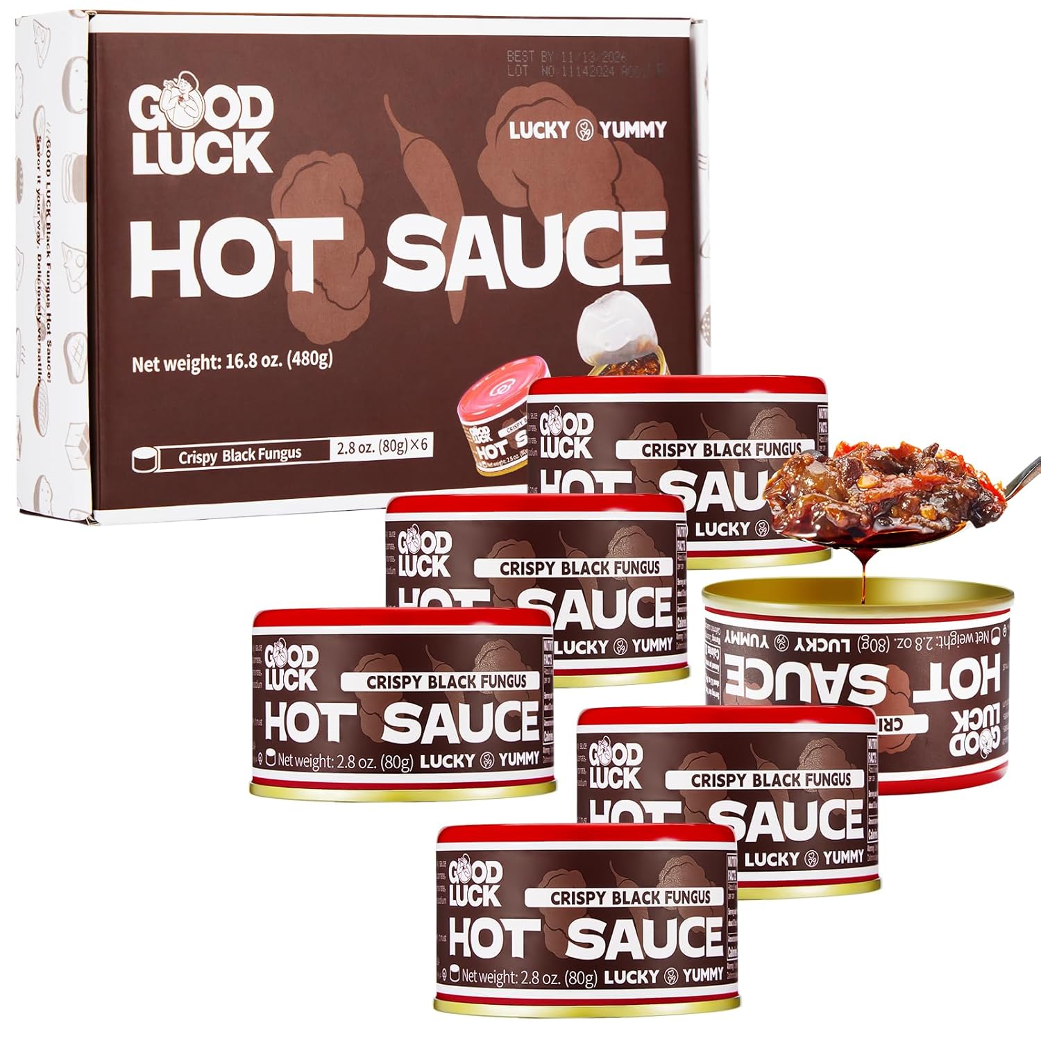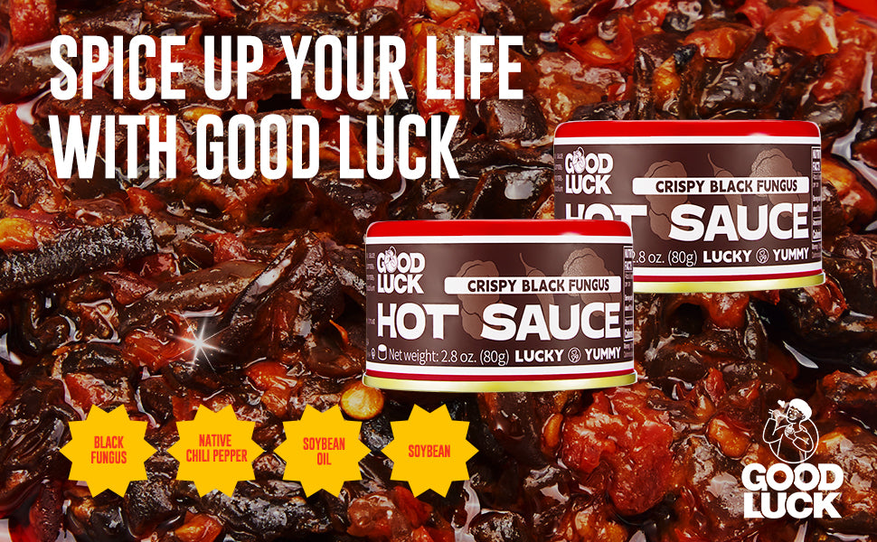 GOOD LUCK Hot Sauce, Unique Instant Crispy Black Fungus Chili Sauce, Spicy Chili Oil and Chili Paste with Chili Pepper, Soy Sauce,Garlic, Delicious Asian sauce for Noodles, Rice